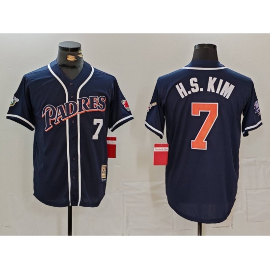 Men's San Diego Padres #7 Ha Seong Kim Navy Player Number Cooperstown Cool Base Jersey