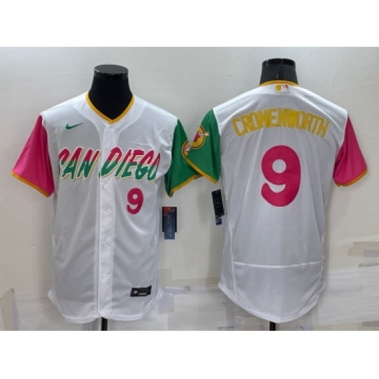 >Men's San Diego Padres #9 Jake Cronenworth White Number 2022 City Connect Flex Base Stitched Jersey