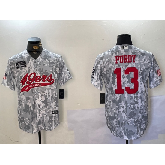 >Men's San Francisco 49ers #13 Brock Purdy Arctic Camo 2024 Salute to Service Stitched Baseball Jersey