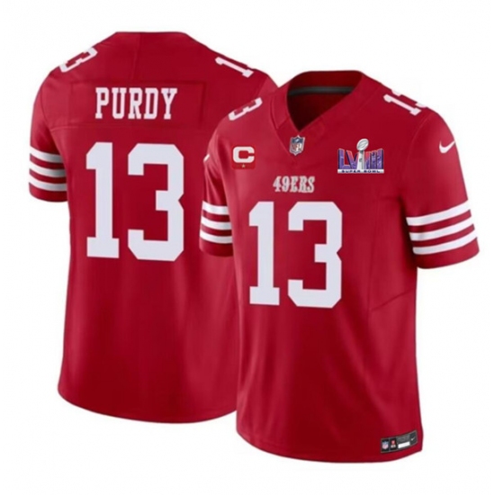 >Men's San Francisco 49ers #13 Brock Purdy Red 2024 F.U.S.E. Super Bowl LVIII And 1-star C Vapor Untouchable Limited Football Stitched Jersey