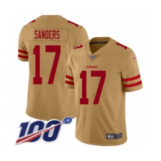 Men's San Francisco 49ers #17 Emmanuel Sanders Limited Gold Inverted Legend 100th Season Football Jersey