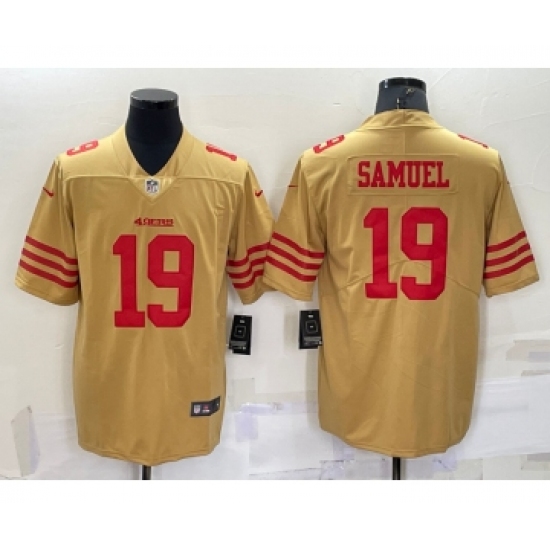 >Men's San Francisco 49ers #19 Deebo Samuel Gold NEW 2022 Inverted Legend Stitched NFL Nike Limited Jersey