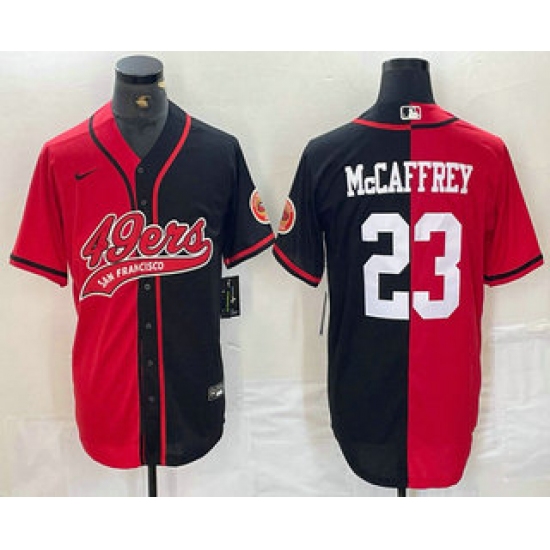 >Men's San Francisco 49ers #23 Christian McCaffrey Red Black Two Tone Cool Base Stitched Baseball Jersey