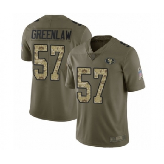 >Men's San Francisco 49ers #57 Dre Greenlaw Limited Olive Camo 2017 Salute to Service Football Jersey