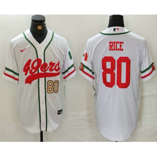 Men's San Francisco 49ers #80 Jerry Rice Number White Mexico Cool Base Stitched Baseball Jersey