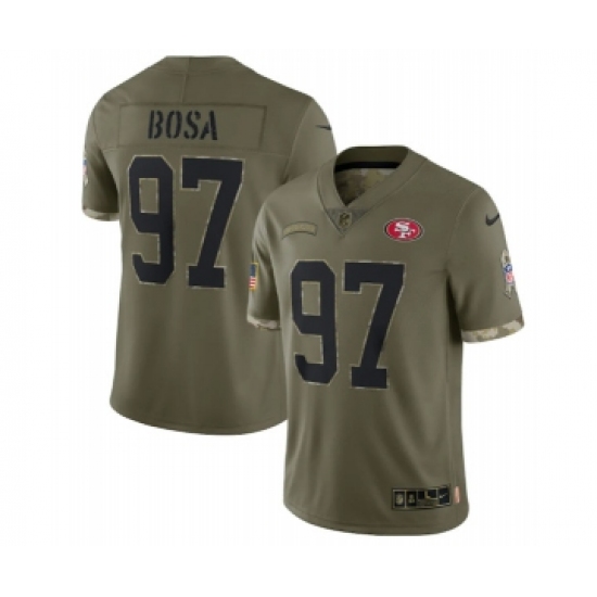 >Men's San Francisco 49ers #97 Nick Bosa 2022 Olive Salute To Service Limited Stitched Jersey