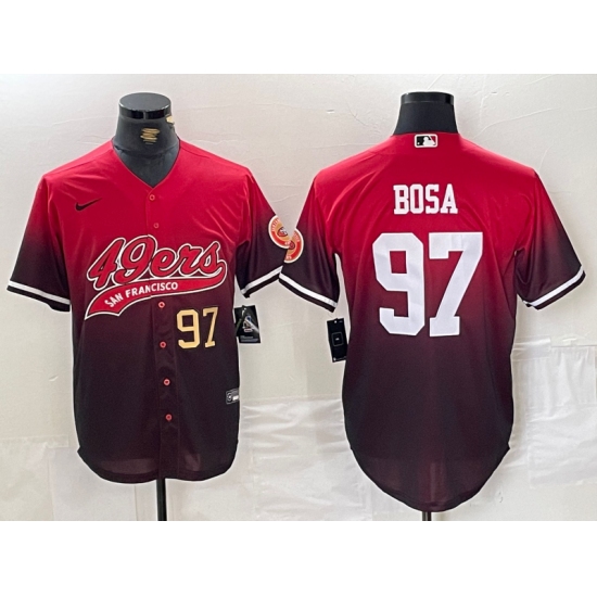 Men's San Francisco 49ers #97 Nick Bosa Red Black With Cool Base Baseball Stitched Jerseys