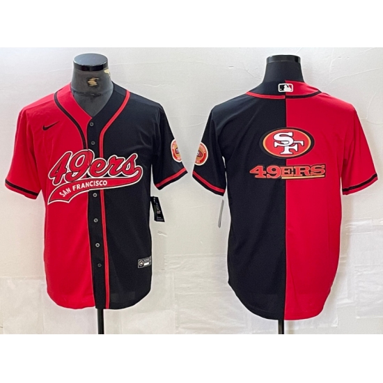 Men's San Francisco 49ers Big Logo Red Black White Blue Two Tone Stitched Baseball Jersey