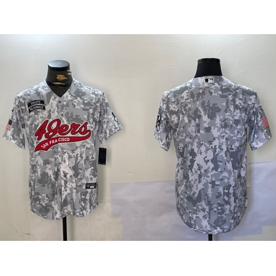 >Men's San Francisco 49ers Blank Arctic Camo 2024 Salute to Service Stitched Baseball Jersey