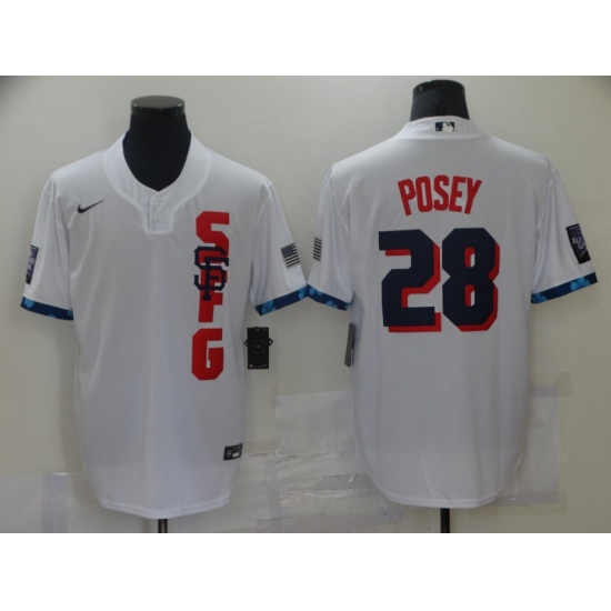 >Men's San Francisco Giants #28 Buster Posey Nike White 2021 All-Star Game Replica Jersey