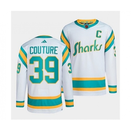 Men's San Jose Sharks #39 Logan Couture White 2022 Reverse Retro Stitched Jersey