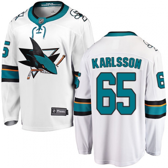 Men's San Jose Sharks #65 Erik Karlsson Fanatics Branded White Away Breakaway NHL Jersey