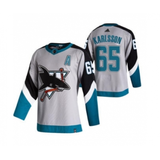 >Men's San Jose Sharks #65 Erik Karlsson Grey 2020-21 Reverse Retro Alternate Hockey Jersey