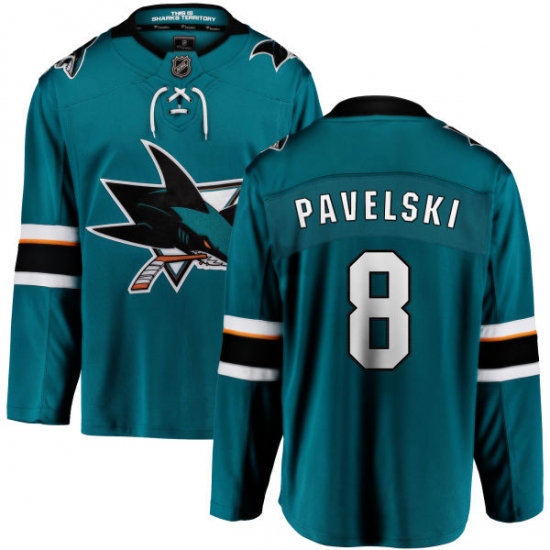 Home>NHL>San Jose Sharks>Joe Pavelski>Men's San Jose Sharks #8 Joe Pavelski Fanatics Branded Teal Green Home Breakaway NHL Jersey