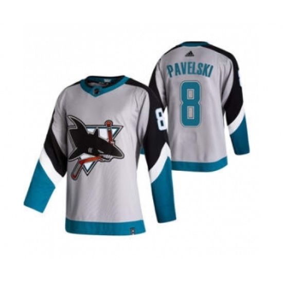 Men's San Jose Sharks #8 Joe Pavelski Grey 2020-21 Reverse Retro Alternate Hockey Jersey