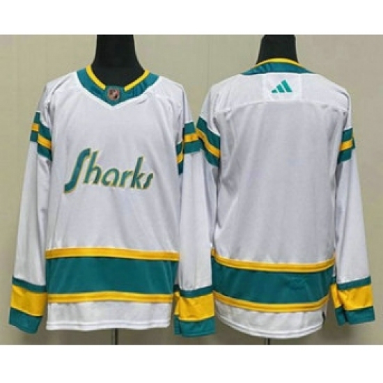 Men's San Jose Sharks Blank White 2022 Reverse Retro Stitched Jersey
