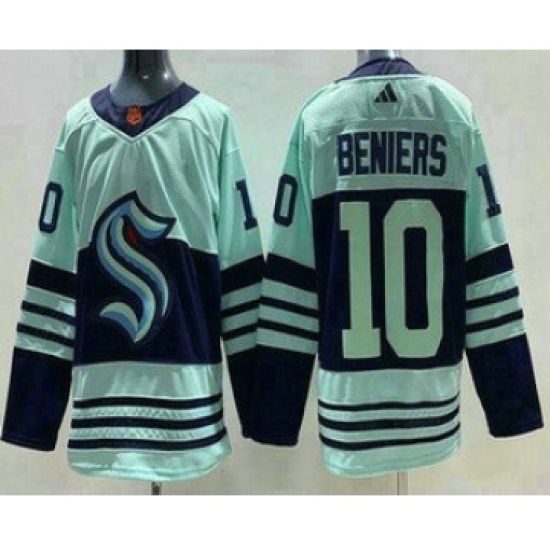 >Men's Seattle Kraken #10 Matthew Beniers Light Green 2022 Reverse Retro Authentic Jersey