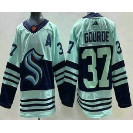 >Men's Seattle Kraken #37 Yanni Gourde Light Green 2022 Reverse Retro Authentic Jersey