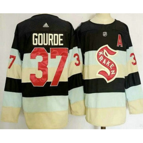 >Men's Seattle Kraken #37 Yanni Gourde Navy 2024 Winter Classic Authentic Jersey