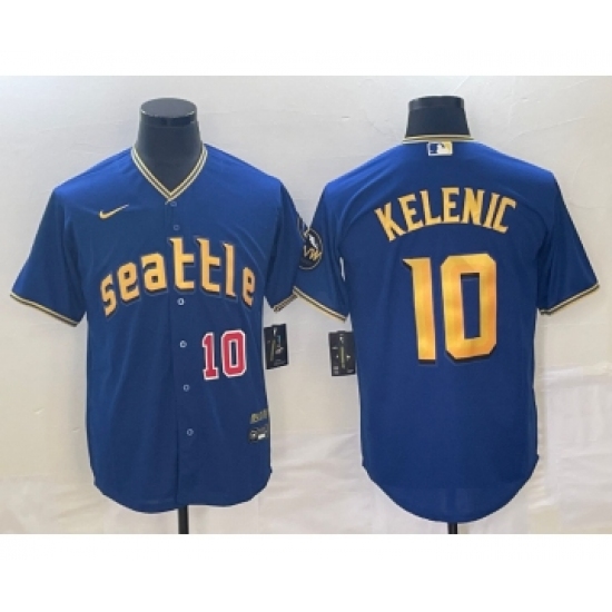 Men's Seattle Mariners #10 Jarred Kelenic Blue 2023 City Connect Flex Base Stitched Jersey