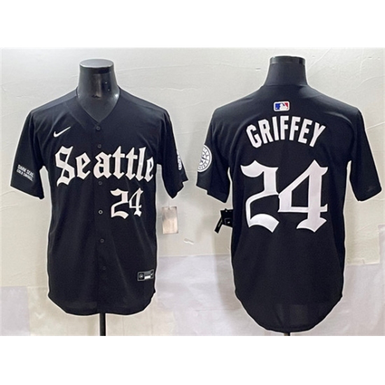 >Men's Seattle Mariners #24 Ken Griffey Jr. Black 'Deep Sea Gothic Edition' Vapor Premier Limited Stitched Baseball Jersey