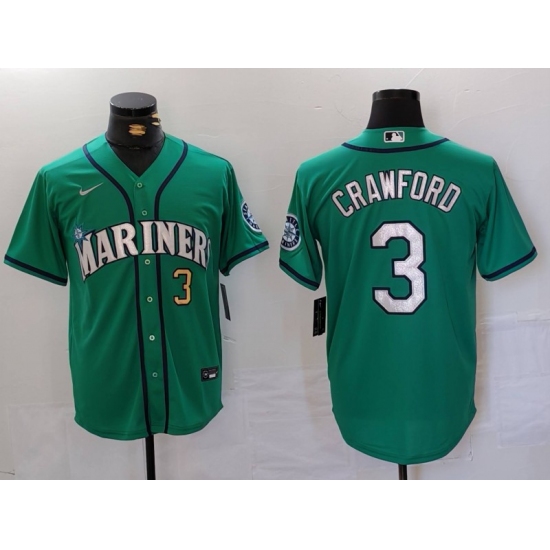 >Men's Seattle Mariners #3 JP Crawford Number Teal Green Stitched Cool Base Nike Jersey
