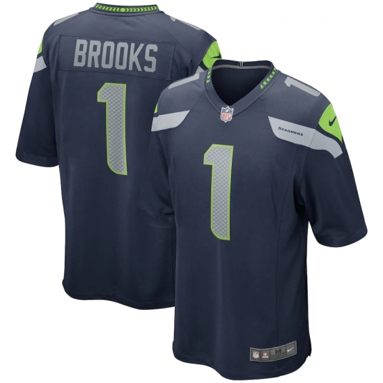 >Men's Seattle Seahawks #1 Jordyn Brooks Nike Navy 2020 NFL Draft First Round Pick Game Jersey.webp