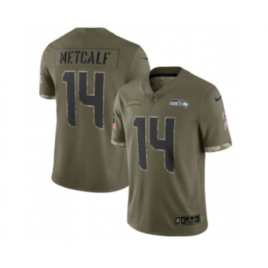 >Men's Seattle Seahawks #14 DK Metcalf 2022 Olive Salute To Service Limited Stitched Jersey