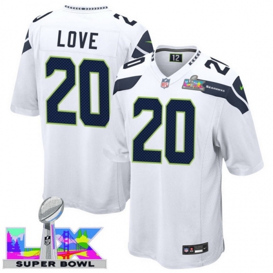 Men's Seattle Seahawks #20 Julian Love White 2025 2026 Super Bowl LX F U S E Stitched Jersey