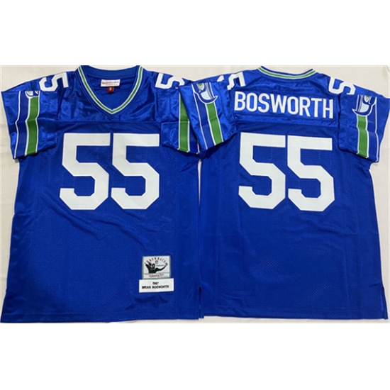 Men's Seattle Seahawks #55 Brian Bosworth Royal Throwback Football Stitched Jersey