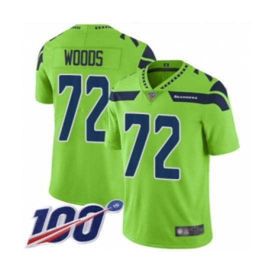>Men's Seattle Seahawks #72 Al Woods Limited Green Rush Vapor Untouchable 100th Season Football Jersey