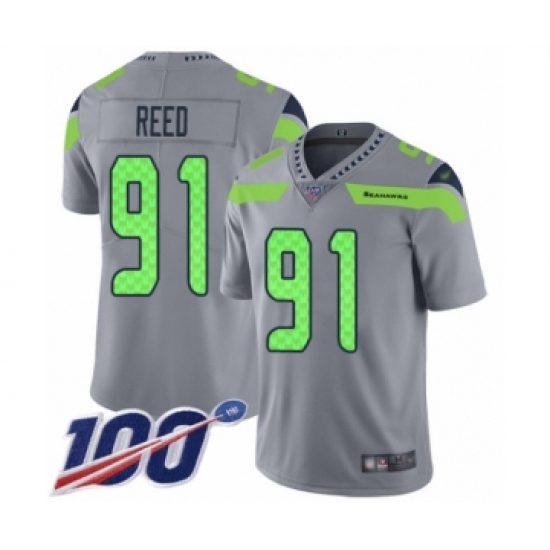 >Men's Seattle Seahawks #91 Jarran Reed Limited Silver Inverted Legend 100th Season Football Jersey