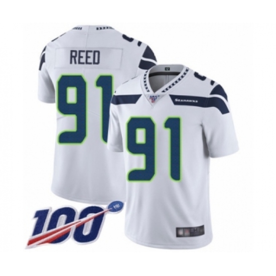 >Men's Seattle Seahawks #91 Jarran Reed White Vapor Untouchable Limited Player 100th Season Football Jersey