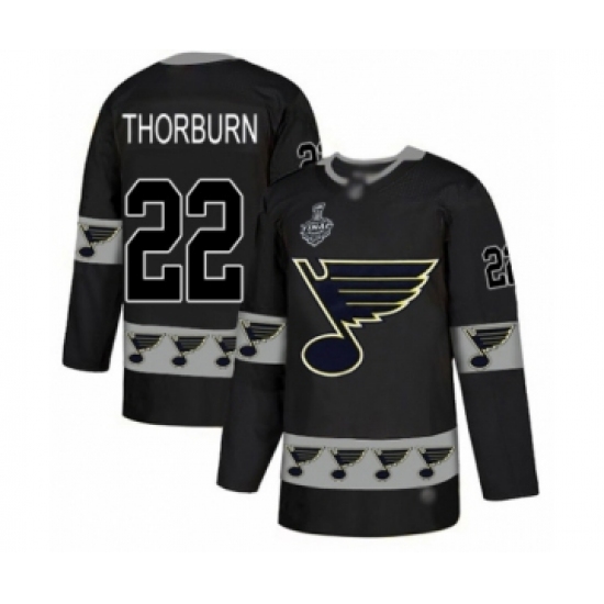 Men's St. Louis Blues #22 Chris Thorburn Authentic Black Team Logo Fashion 2019 Stanley Cup Final Bound Hockey Jersey