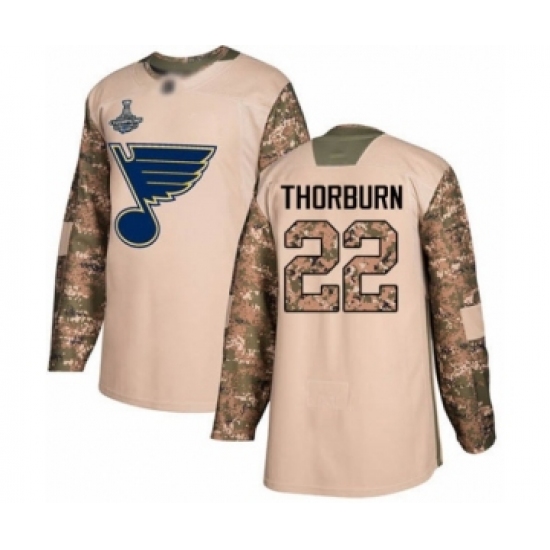 >Men's St. Louis Blues #22 Chris Thorburn Authentic Camo Veterans Day Practice 2019 Stanley Cup Champions Hockey Jersey