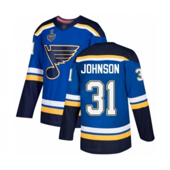 >Men's St. Louis Blues #31 Chad Johnson Authentic Royal Blue Home 2019 Stanley Cup Final Bound Hockey Jersey