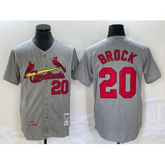 >Men's St Louis Cardinals #20 Lou Brock Grey Wool Stitched Throwback Jersey