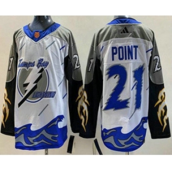 >Men's Tampa Bay Lightning #21 Brayden Point White 2022 Reverse Retro Authentic Jersey