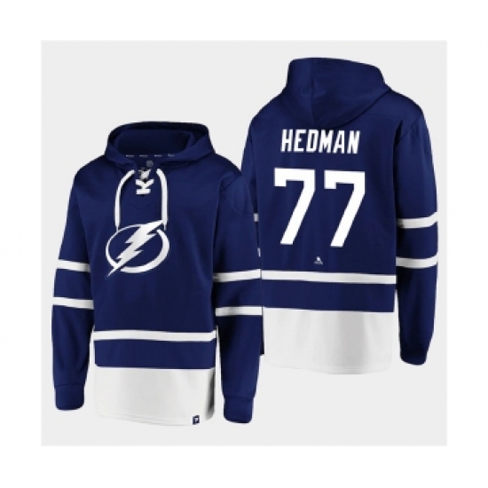 Men's Tampa Bay Lightning #77 Victor Hedman Blue All Stitched Sweatshirt Hoodie
