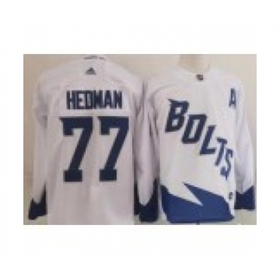 Men's Tampa Bay Lightning #77 Victor Hedman White 2022 Reverse Retro Authentic Jersey