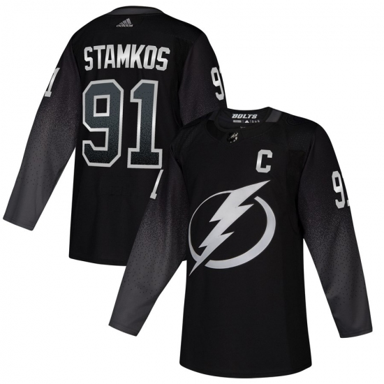 Men's Tampa Bay Lightning #91 Steven Stamkos adidas Alternate Authentic Player Jersey Black