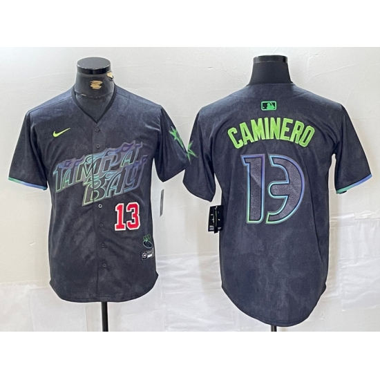 Men's Tampa Bay Rays #13 Junior Caminero Number Charcoal 2024 City Connect Limited Stitched Jersey