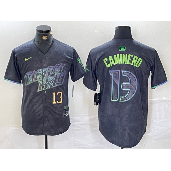 Men's Tampa Bay Rays #13 Junior Caminero Number Charcoal 2024 City Connect Limited Stitched Jerseys