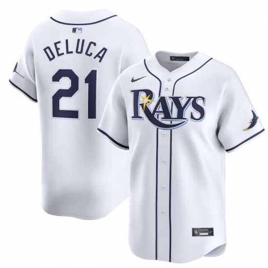 Men's Tampa Bay Rays #21 Jonny DeLuca White Home Limited Stitched Baseball Jersey