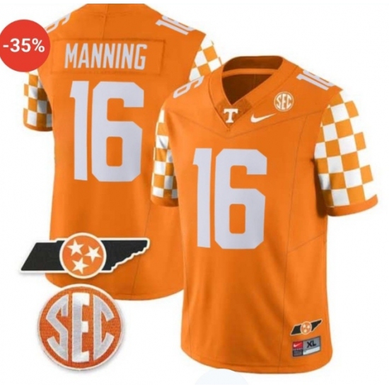 Men's Texas Longhorns #16 Peyton Manning Orange 2025 CFP Final With SEC Patch Stitched Jersey