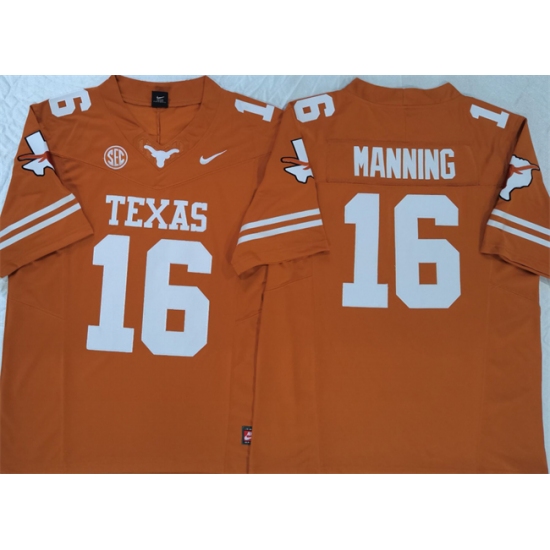Men's Texas Longhorns #16 Peyton Manning Orange 2025 CFP Final With SEC Patch Stitched Jersey