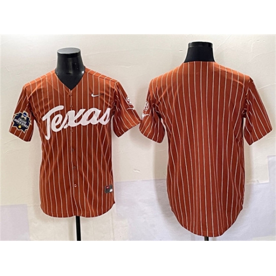 >Men's Texas Longhorns Blank Orange Pinstripe 2025 World Series & SEC Patch Stitched Jersey