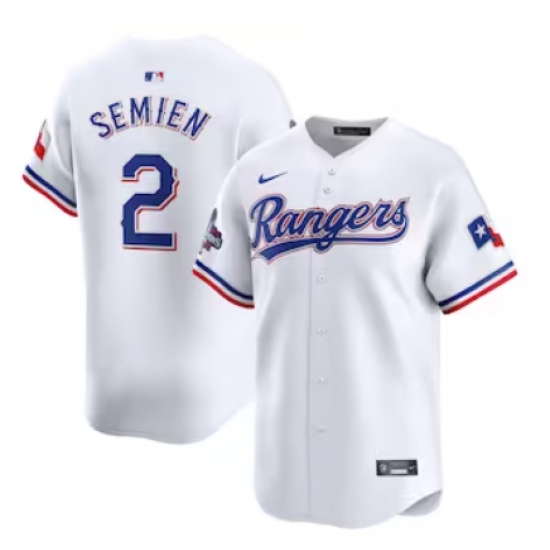 Men's Texas Rangers #2 Marcus Semien Nike White Home 2023 World Series Champions Limited Jersey