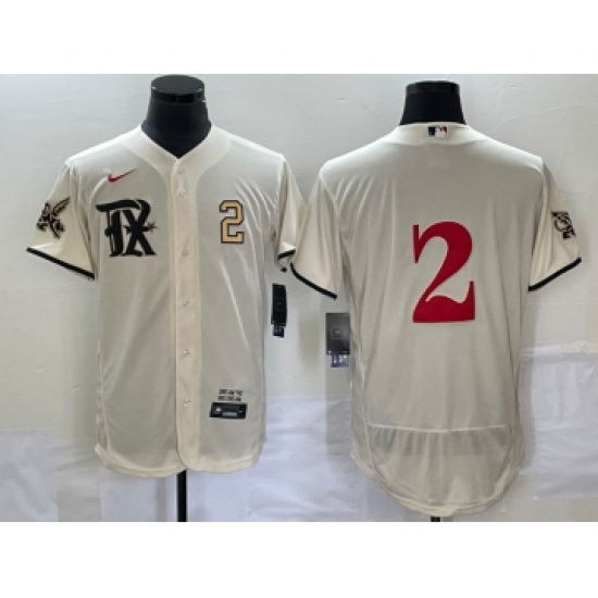 Men's Texas Rangers #2 Marcus Semien Cream 2023 City Connect Flex Base Stitched Jersey