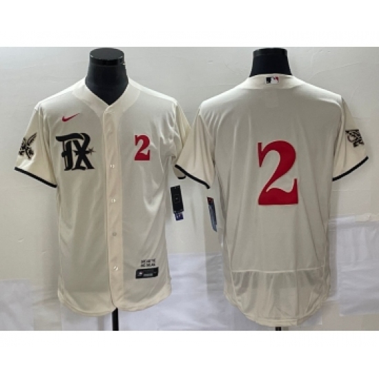 Men's Texas Rangers #2 Marcus Semien Number Cream 2023 City Connect Flex Base Stitched Jersey